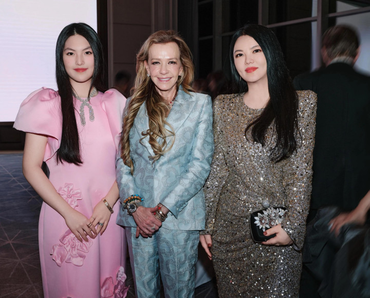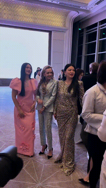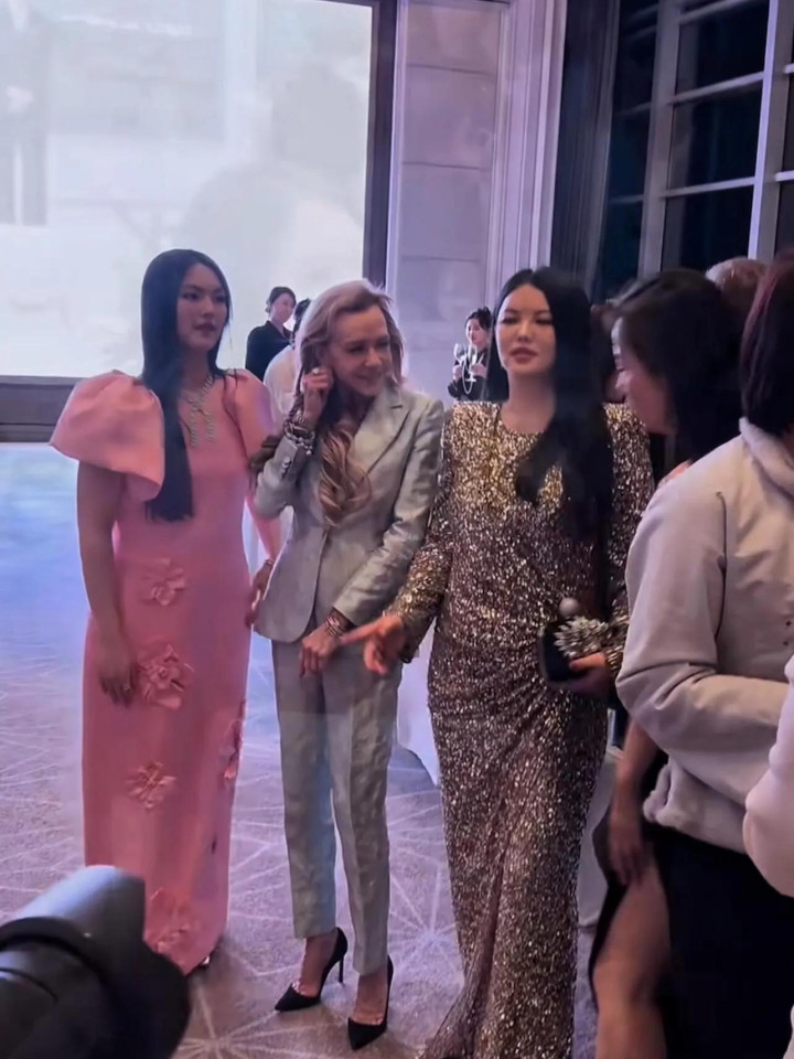 晚宴现场,李湘把女儿王诗龄介绍给萧邦总裁卡罗琳女士,她们三个还一起拍了合影。李湘身穿一件银色的晚礼服,现场视频里她很胖,但是到了精修图里她很瘦很漂亮。卡罗琳女士很喜欢王诗龄,她笑的很开心,王诗龄则显得有些拘谨,她没有李湘自然大方。